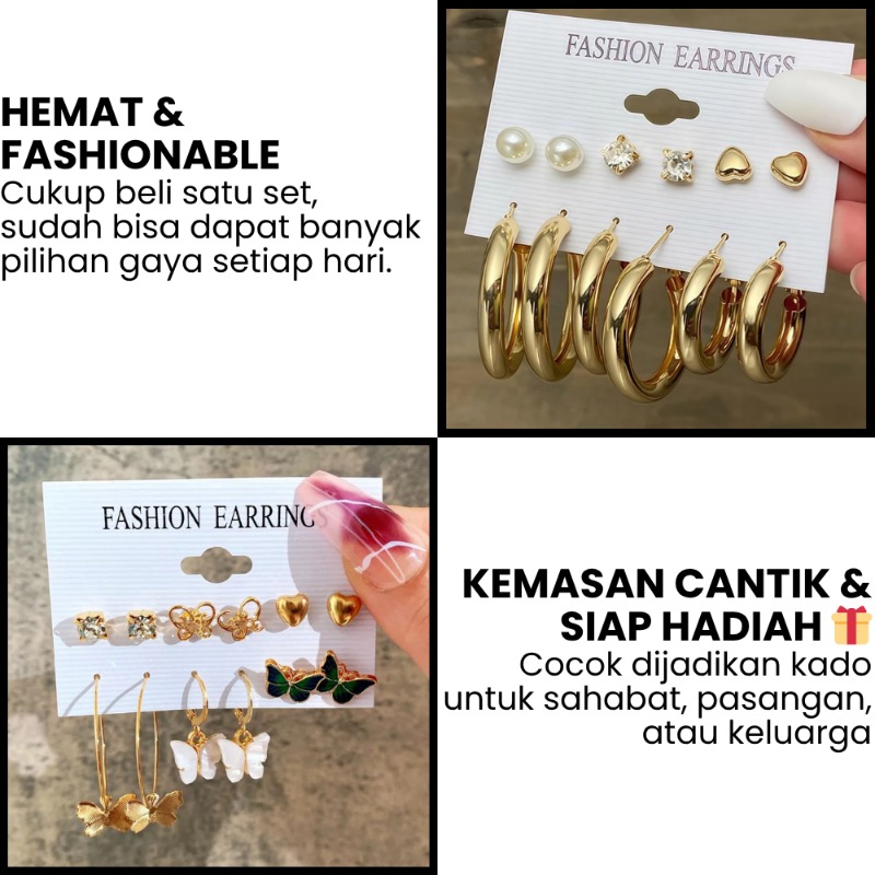 Tampil cantik tanpa usaha berlebih — cukup kenakan Anting Korea Set 6Pcs ini, dan biarkan pesonamu berbicara!